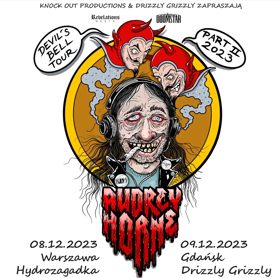 Tagi: Audrey Horne, bilety, devilsbell, devilsbelltour, devilsbelltour2023, doomstar, drizzlygrizzly, gdańsk, Hydrozagadka, knock out poroductions, koncert, NapalmRecords, revelationsmusic, warszawa.