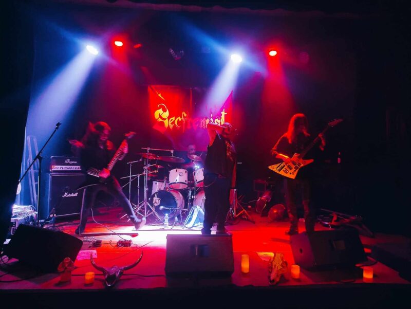 Pierwszy slot piątkowego wieczoru należał do reprezentantów Warmii z Secfremist. Ufając informacjom z przedkoncertowych zapowiedzi, oczekiwałem występu zespołu death metalowego, szybko jednak przekonałem się, że grupie (zarówno wizualnie, jak i muzycznie) dużo bliżej do black metalowej hordy, ukierunkowanej na lanie ze sceny strumieni siarki i smoły. Potencjał drzemiący w muzyce kapeli jest duży, właściwemu przekuciu go na wrażenia sceniczne przeszkadzała jednak trochę niemrawa postawa frontmana zespołu, który sprawiał wrażenie bardzo onieśmielonego, by nie powiedzieć zagubionego w akcji. Całkowity brak konferansjerski i uporczywe uciekanie od nawiązania najmniejszego nawet kontaktu wzrokowego z publiką, spotęgowały niełatwe warunki temperaturowe klubu, przez które dzielnie uszykowany corpsepaint wokalisty rozmazał się niemal całkowicie już w pierwszej połowie koncertu. Na szczęście w sukurs zespołowi przyszła niezrażona tego wieczoru publika, która dopingowała Secfremist praktycznie przez cały czas trwania występu. Odczucia po ostatnim dzwonku miałem mieszane, ostatecznie przeważyły jednak te pozytywne.