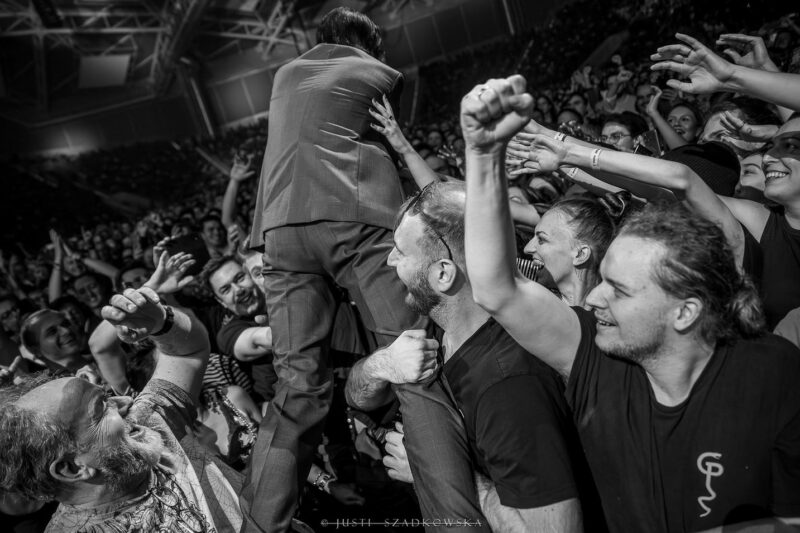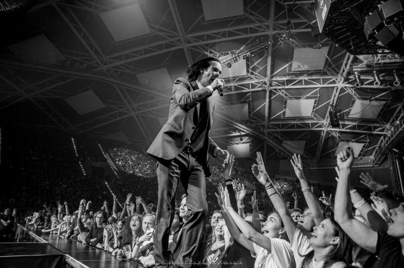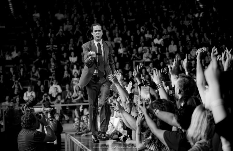 Ba, relacje między publicznością i jej idolem, to w tym przypadku całkowicie osobny temat. Reakcje słuchaczy, ich zaangażowanie i oddanie są naprawdę niezwykłe. Cave umiejętnie wspomniane impresje generuje i skutecznie je podsyca – zarówno wtedy, gdy snuje ze sceny opowieści i sprzedaje dyskretne uśmiechy, nawiązując kontakt wzrokowy z wybranymi fanami, pozornie nonszalancko przechadza się krawędzią sceny i tylko delikatnie ociera o wyciągnięte w jego kierunku dłonie, ucisza niesfornych fanów, by po chwili podarować im autografy, jak i wtedy, gdy całkowicie oddaje się interakcji i beztroskiej zabawie z publicznością, kilkukrotnie w trakcie koncertu (dosłownie) się w niej zanurzając. Trudno nie przyznać racji tym, którzy właśnie w tym aspekcie upatrują największej siły występów artysty.