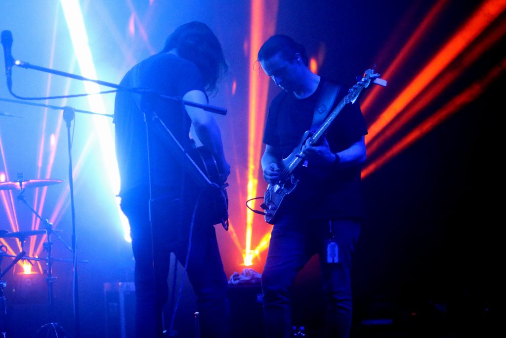 Wieczór otworzył irlandzki duet Xenon Field, który zaprezentował swoją definicję łączenia żywej elektroniki z gitarami i perkusją, z wyłączeniem wokali. Nie pierwszy raz takie klimaty wzbudzają we mnie ciekawość, tym bardziej że na co dzień kompletnie nie mam ochoty sięgać po bity w postaci nowoczesnej, eksperymentalnej elektroniki. Na myśl od razu przychodzą mi nasi rodzimi reprezentanci podobnej formy ekspresji z Panami z Kamp na czele czy duet Rebeka, których koncerty na żywo cenię. Jeśli ktoś odnajduje się w takiej stylistyce, najmocniej zachęcam sprawdzić jak wypada Xenon Field. Nie do końca natomiast jestem przekonana, czy aby wybór supportu był trafiony. W końcu God Is An Astronaut to jednak inny świat muzyczny, inna wrażliwość.
