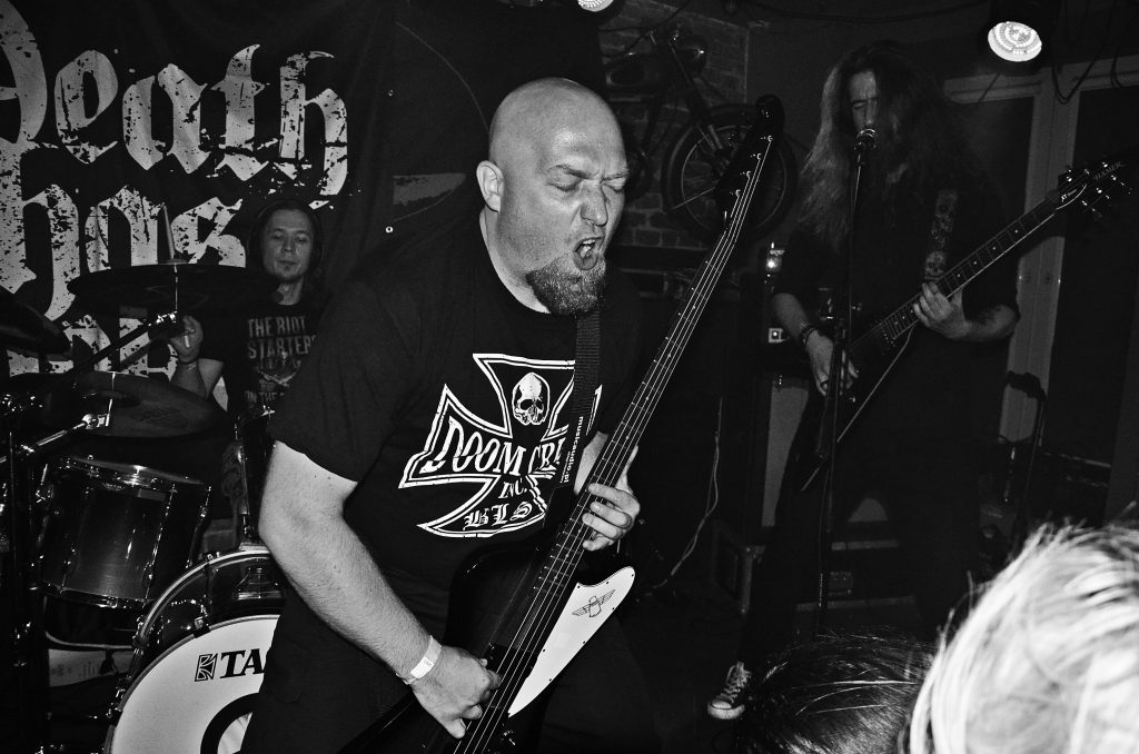 Pogoda, jakże pasująca do doomowych klimatów, stanowiących przecież sedno wieczoru, skutecznie utrzymywała publikę w goszczącym event Harym Pubie, szybko go wypełniając. Do tego stopnia, że jeszcze przed pierwszym występem dociśnięcie się do baru było problemem, a znajome twarze co i rusz pojawiały się i znikały na sali.