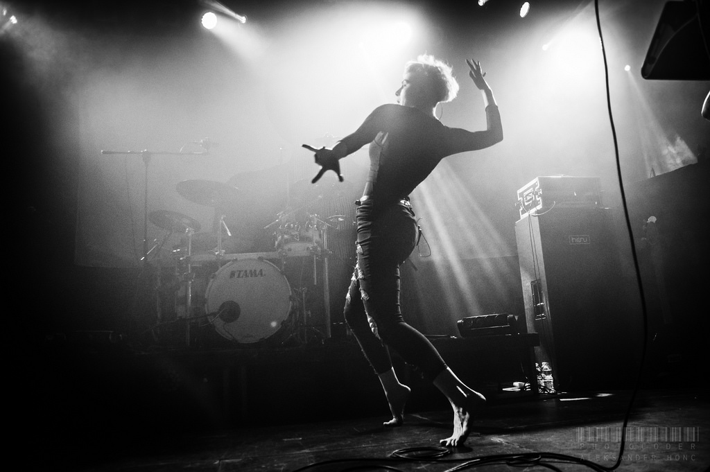 A zaczęło się niewinnie. Progresja o godz. 19.00 jeszcze nie pękała w szwach, w ogródku kwitły petunie i piwonie, elegancko można było zaopatrzyć się w merszowe dobrodziejstwa i powoli zacząć zmieniać nastrój na posępny wraz z wejściem na scenę Entropii. Długo czekałam na możliwość usłyszenia tego oleśnickiego zespołu na żywo, bowiem pomieszanie szeroko pojętego post-metalu z shoegaze’m leży w granicach mojego gustu w dość okazałej rozpiętości. Nadzieje nadziejami, jednak 30 minut występu nie wystarczyło mi zupełnie, aby wejść w ten występ duszą. Publika otrzymała trochę melodii, trochę przyłożenia i muśnięcie klawiszy, oprawa była skromna, muzycy pewnie delektowali się sceną, wszystko bez zarzutu. Ale i bez polotu. Chętnie przyjrzę się Entropii w innych okolicznościach.