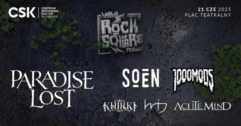 Podczas letniego przesilenia, czyli przedostatniej soboty czerwca, w samym centrum Lublina odbyła się pierwsza edycja festiwalu Rock The Square. Scenę postawiono na sporym placu, znajdującym się przed szklanym gmachem ważnego obiektu kulturalnego, Centrum Spotkania Kultur. Mowa więc o wydarzeniu odbywającym się niemalże w pełni na świeżym powietrzu (niemalże, gdyż stoiska z merchem artystów zlokalizowano na korytarzu CSK, ponadto można było skorzystać ze znajdujących się w budynku toalet). Pogoda dopisała, słoneczko przypiekało, aczkolwiek było też gdzie się przed nim schronić, a wszystko to w towarzystwie kilku uznanych zespołów.