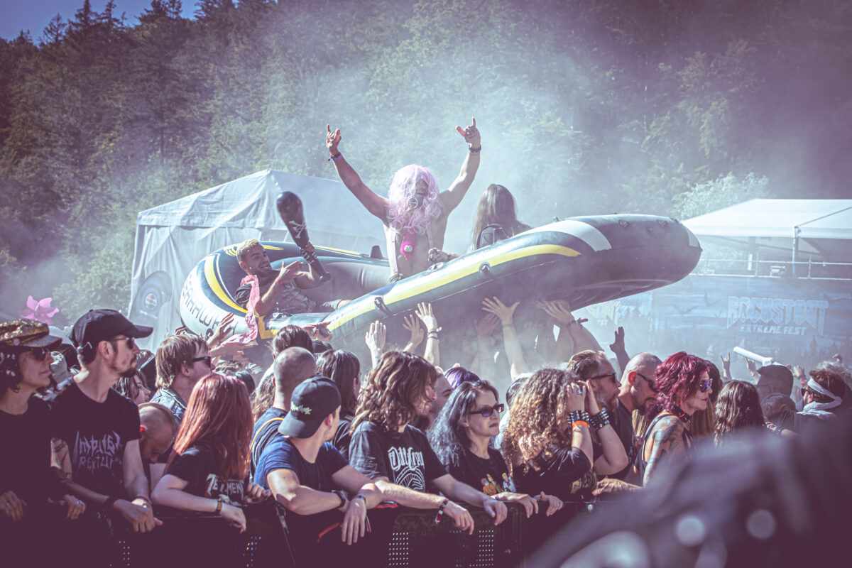 Po Toxic Holocaust do akcji wkroczył czeski goregrindowy Gutalax. Gdy technicy biegali po scenie w pocie czoła, przestrzeń wokół nas na arenie zaczynała się szybko kurczyć. Ludzie napływali ze wszystkich możliwych stron, żeby zobaczyć jeden z najbardziej oczekiwanych występów na Rockstadt. W tłumie spotkaliśmy np. grupę z Meksyku, która pojawiła się w Rumunii specjalnie dla czeskiej trupy parającej się fekalną tematyką! Co za poświęcenie. Charakterystyczne białe kombinezony były rozdawane bezpłatnie każdemu, kto chciał je założyć i brać udział w tym „gównianym” szaleństwie. Nad głowami tłumu pojawiły się różnego rodzaju nadmuchiwane zwierzęta i przedmioty, a co druga osoba trzymała rolkę papieru toaletowego, gotową do wystrzelenia w górę niczym confetti. Kiedy Gutalax wkroczył na scenę, tłum eksplodował wrzawą. Rolki papieru toaletowego latały nad circle pitami, ludzie w pogo odbijali się od siebie jak nadmiernie pobudzone atomy, do tego nadpłynął jeszcze dmuchany gumowy ponton. Sceneria na żywo zmienia muzykę Gutalaxa w hałaśliwy set, który ucieleśnia szaleństwo i radość letnich festiwali. Nawet jeśli nie jest się fanem tego typu muzyki i „gównianego” poczucia humoru, absolutnie warto przynajmniej raz w życiu doświadczyć tego szaleństwa na własnej skórze.