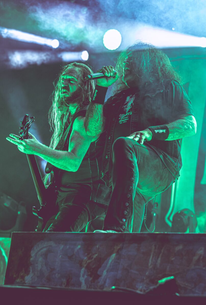 Przed trzecim dniem festiwalu, którego motywem był „Teutonic Thrash”, mieliśmy okazję posłuchać klasycznego thrashu z Bay Area od zapomnianych legend – Testament. Testament nigdy nie był zaliczany do tradycyjnej Wielkiej Czwórki, ale ich thrashowa twórczość ma w sobie coś, co moim zdaniem czyni ich lepszym kandydatem niż Anthrax. Testament jest obecnie w trasie koncertowej promującej winylowe wznowienia swoich klasycznych wydawnictw z lat 80., “Legacy” i “New World Order”, a setlista na festiwalu w dużej mierze czerpała z tych właśnie albumów. Oczywiście Testament wygląda teraz i brzmi inaczej niż wtedy, gdy te płyty były pierwotnie produkowane, ale talenty Alexa Skolnicka i Steve’a Di Giorgio służą wzmocnieniu i uwydatnieniu tych utworów, tak jakby było tchnięte w nie nowe życie. Chuck Billy zawsze wygląda, jakby był przeszczęśliwy, że może stać na scenie, przed swoimi fanami. Ten wieczór nie był wyjątkiem, gdy wokalista z uśmiechem na twarzy przyglądał się wypełnionej po brzegi arenie Rockstadt. Bas Steve’a Di Giorgio jest głównym elementem miksowania dźwięku, ale jeśli masz na tyle szczęścia i w twojej kapeli gra taki ponadpokoleniowy arcybasista, warto to wykorzystać. To był świetny set, choć czułem pewien niedosyt. Miałem nadzieję usłyszeć kilka utworów z najnowszego wydawnictwa, “Titans of Creation”, albo coś z nadchodzącej nowej płyty, tylko po to, żeby skontrastować ich bardziej nowoczesny styl z wydawnictwami z lat 80.