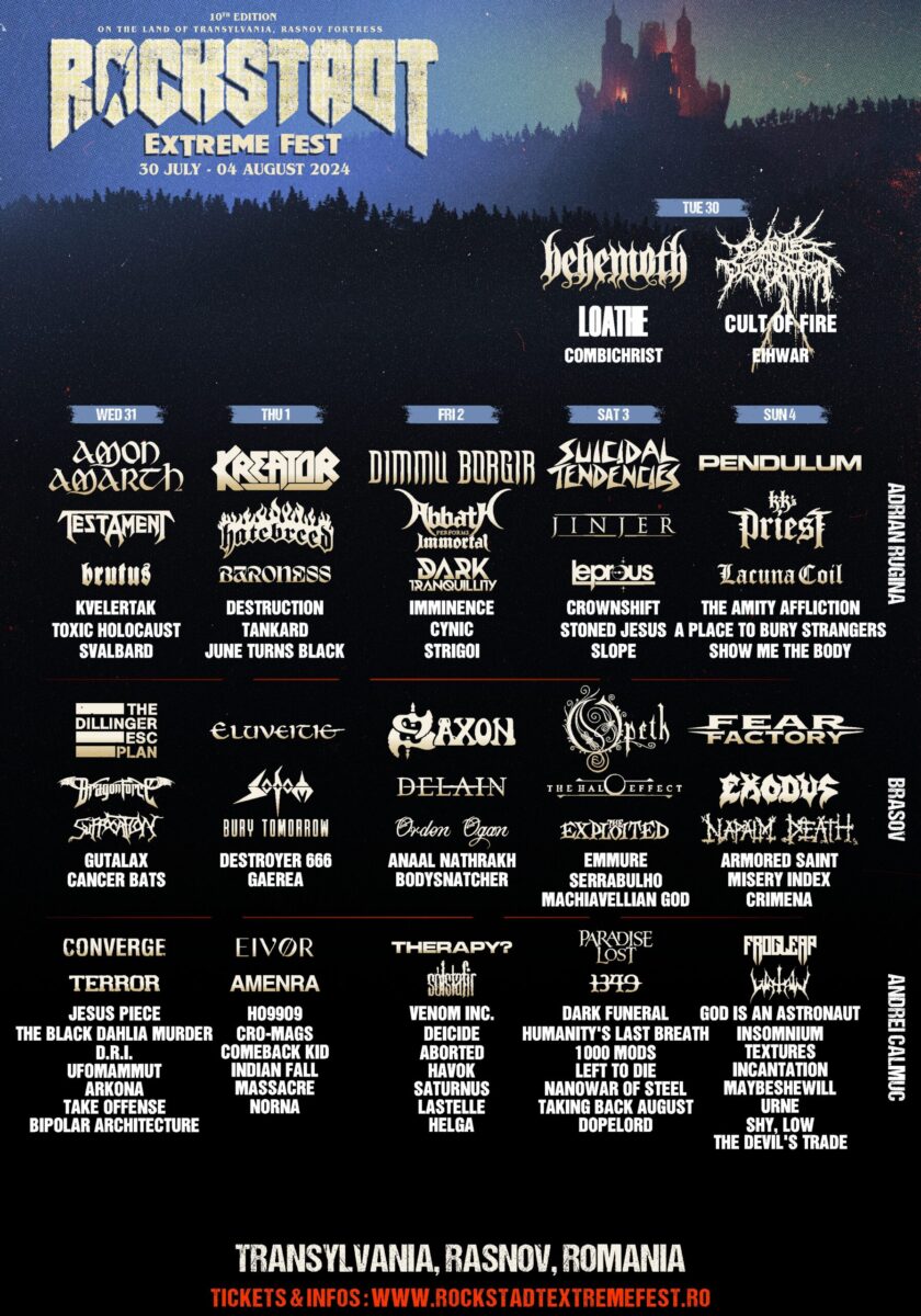 Rockstadt Extreme Fest odbył się w dniach 30 lipca – 4 sierpnia w miejscowości Rasnov w samym sercu legendarnej Transylwanii. W tym roku Rockstadt świętował swoją 10 rocznicę. Z tej okazji festiwal przemienił się w 6-dniowy maraton koncertowy. Organizatorzy zapewnili uczestnikom wiele niezapomnianych muzycznych wrażeń, prezentując jeden z solidniejszych lineupów tego lata. Do Rumunii zlecieli się fani ciężkich brzmień z całego świata. My również tam byliśmy i przygotowaliśmy dla Was relację z tej imprezy.