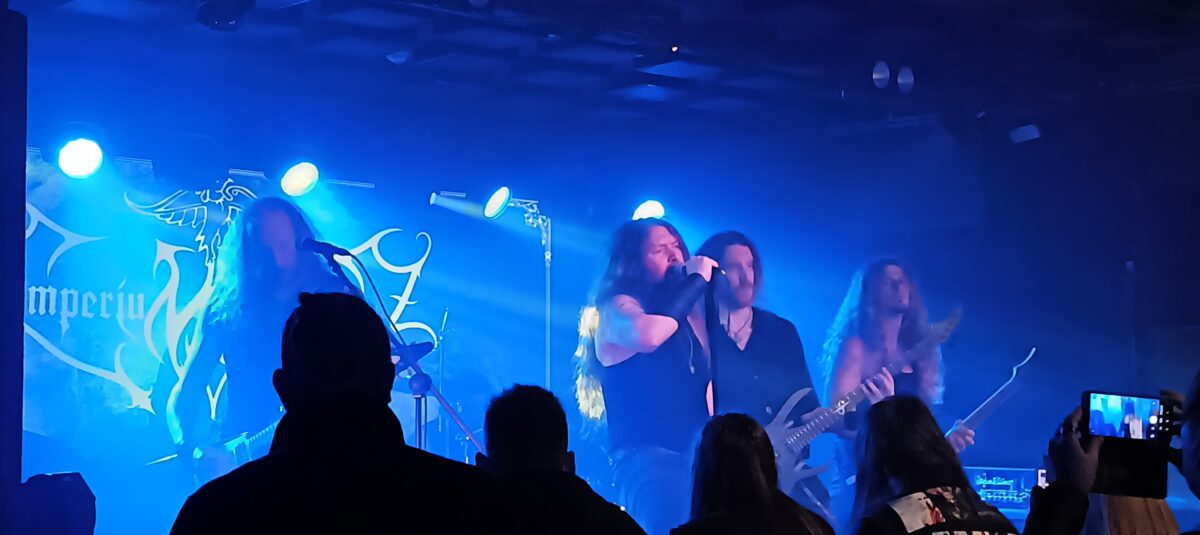 Po krótkiej przerwie na scenie zainstalował się zespół, na który ja osobiście czekałem – niemiecki Imperium Dekadenz. Pięcioosobowy skład ledwo się tam mieścił, ale zdecydowanie pozamiatał poznańską publicznością. Mroczne intro, a po nim jazda bez trzymanki. Zaczęli ostro od Bis ich Bin z niesamowitej When We Are Forgotten i to był doskonały początek destrukcji, jaką zaserwowali nam niemieccy blackmetalowcy. Wściekłe riffy, potężna perkusja i niestety ginące w tle klawisze, które miały być podkładem, a były jedynie ledwie słyszalne, i ktoś, kto nie znał do tej pory muzyki Imperium Dekadenz, mógł się tylko domyślać, że w wolniejszych momentach “to coś w tle” to także element muzyki. Niestety, takie są uroki muzycznych podkładów, które kompletnie nie zdają egzaminu w wersji live. Po krótkim wypadzie w stronę przedostatniej płyty zespół zaserwował Awekened Beyond Dreams oraz Aurora z ostatniej najwyżej cenionej przeze mnie Into Sorrow Evermore. W międzyczasie wokalista szalejący na scenie przywitał polską publiczność i z ekscytacją oznajmił, że to ich pierwszy koncert w Polsce, i że nie spodziewał się tak ciepłego przyjęcia. Na koniec Imperium Dekadenz zaserwowali nam Memories… A Raging River oraz kapitalny starszy kawałek Schwarze Walder, a następnie żegnani gromkimi brawami i okrzykami radości zeszli ze sceny, obiecując szybki powrót do Polski. Moim skromnym zdaniem był to najlepszy występ wieczoru i sądząc po reakcji publiczności, nie tylko ja tak uważałem.
