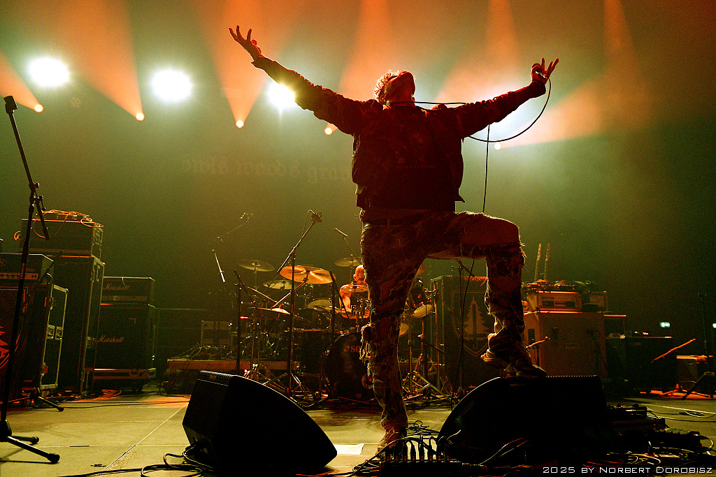 Najważniejsze było jednak to, co na scenie, a gdy dotarłem już do katowickiego MCK (swoją drogą była to moja pierwsza koncertowa wizyta tutaj i naprawdę szkoda, że tak rzadko odbywa się tu coś metalowego, bo miejscówka jest świetna) trwał występ znanego i lubianego nad Wisłą Owls Woods Graves. Myślę, że muzycy wchodzący w skład tego projektu doskonale wiedzą, że mają w swoich portfolio sporo znacznie lepszych rzeczy, choć przyznaję, że serwowana przez zespół prosta fuzja punka i black metalu niewątpliwie ma swój urok. Na pewno OWG pasuje mi do roli otwieracza na tego typu eventach – jako szybki strzał rozbudzający publikę spisali się we wtorek więcej niż dobrze, a kompozycje takie jak Idzie diabeł poderwały do lekkiego ruchu nawet tych najbardziej sceptycznie nastawionych. Więcej niż pół godziny byłoby dla mnie jednak nieco nużące, dlatego tym razem byłem wyjątkowo zadowolony z lekkiego spóźnienia.