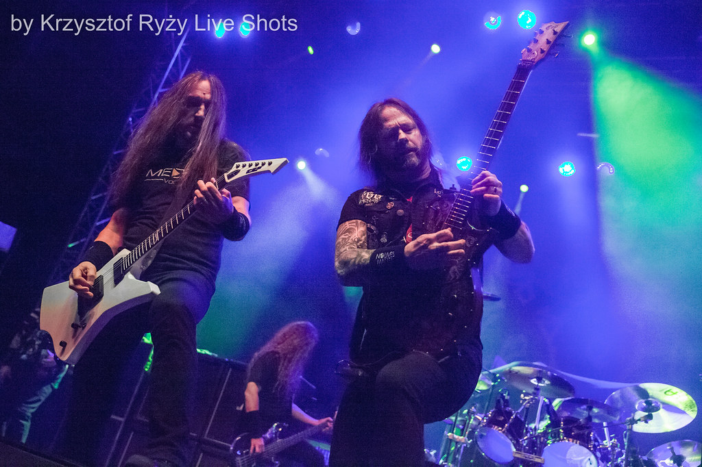 Występujący po Death Angel Exodus był zdecydowanie najmniej lubianą przeze mnie kapelą z całej trójki. Ale zespołowi udało się w pewnym stopniu ocieplić moje odczucia co do niego. Ależ to była jatka! Zabójcze przez całą godzinę (a przez to i odrobinę monotonne) tempo występu współgrało z równie morderczym circle pitem, Gary Holt i Lee Altus często popisywali się swoimi gitarowymi umiejętnościami (ogromnej poprawie uległa kwestia nagłośnienia – szkoda, że nie było tak dobrze od początku), a Tom Hunting tak szalał za swoim zestawem perkusyjnym, że można było się obawiać o to, czy jego bębny to wytrzymają. Jeśli miałbym do czegoś się przyczepić, to głównie do piskliwego wokalu Steva ‘Zetro’ Souzy, który jednak nie odpowiada mi nawet na studyjnych albumach zespołu. No szkoda, gdyby poszczególne wałki były śpiewane w inny sposób, to prawdopodobnie występ Exodus wyrwał by mnie z moich glanów – tym bardziej, że nieliczne fragmenty, w których ‘Zetro’ śpiewał nisko wchodziły mi bez popitki. Całościowo było jednak dobrze, a biorąc pod uwagę niektórych zapłakanych ze wzruszenia fanów zespołu, mógłbym nawet z czystym sumieniem napisać, że było fantastycznie.
