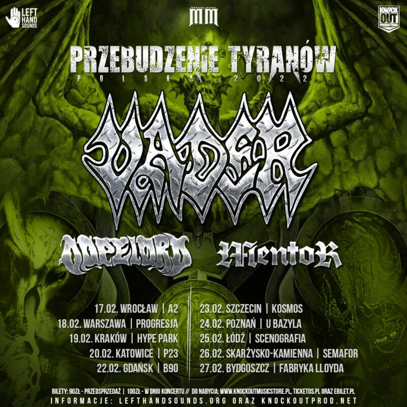 Drugi przystanek Przebudzenia Tyranów był pierwszym muzycznym wydarzeniem, jakie miałem okazję obejrzeć na żywo w 2022 roku. Oprócz Vader, Dopelord i Mentor, czyli trzech zespołów, które w lutym tego roku odwiedziły 10 polskich miast, w Warszawie wystąpił także gość specjalny – uznany, death metalowy skład Azarath. Przyznaję, że miałem względnie niewygórowane wymagania co do trasy: chciałem zobaczyć sprawnie zagrane występy wyżej wymienionych grup, ale nie nastawiałem się na nie jak na wyczekiwany przez wiele miesięcy przyjazd muzyków z zachodu. Z niekrytą satysfakcją stwierdzam, że każdy z zespołów był tego wieczoru w znakomitej kondycji koncertowej, a zaplanowane przez artystów niespodzianki spotęgowały dobre wrażenia. Klub opuszczałem bardziej zadowolony, niż mógłbym się tego spodziewać.