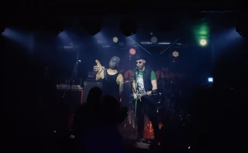 Wieczór otwierać miał miejscowy skład Dungeon Tea Party, ale z bliżej nieznanych mi przyczyn nie dotarł na swój event, na pierwszy ogień poszli więc warszawiacy z Neon Mud. Zadanie mieli mało wdzięczne, bo początkową frekwencję pod sceną NRD można było policzyć na palcach jednej ręki (pozbawionej dodatkowo kłykcia). Trudne okoliczności nie wydawały się jednak zrażać dziarsko usposobionego trio. Muzyka zespołu poza lekkim vintage’owym sznytem charakteryzowała się szaloną przebojowością i zaraźliwym humorem, dzięki czemu dolne kończyny same wesoło rwały się do tańca. Eleganckie chłopaki, których skrzętnie zanotowałem sobie w zeszycie pod literą ś (jak „śledzić poczynania” ).