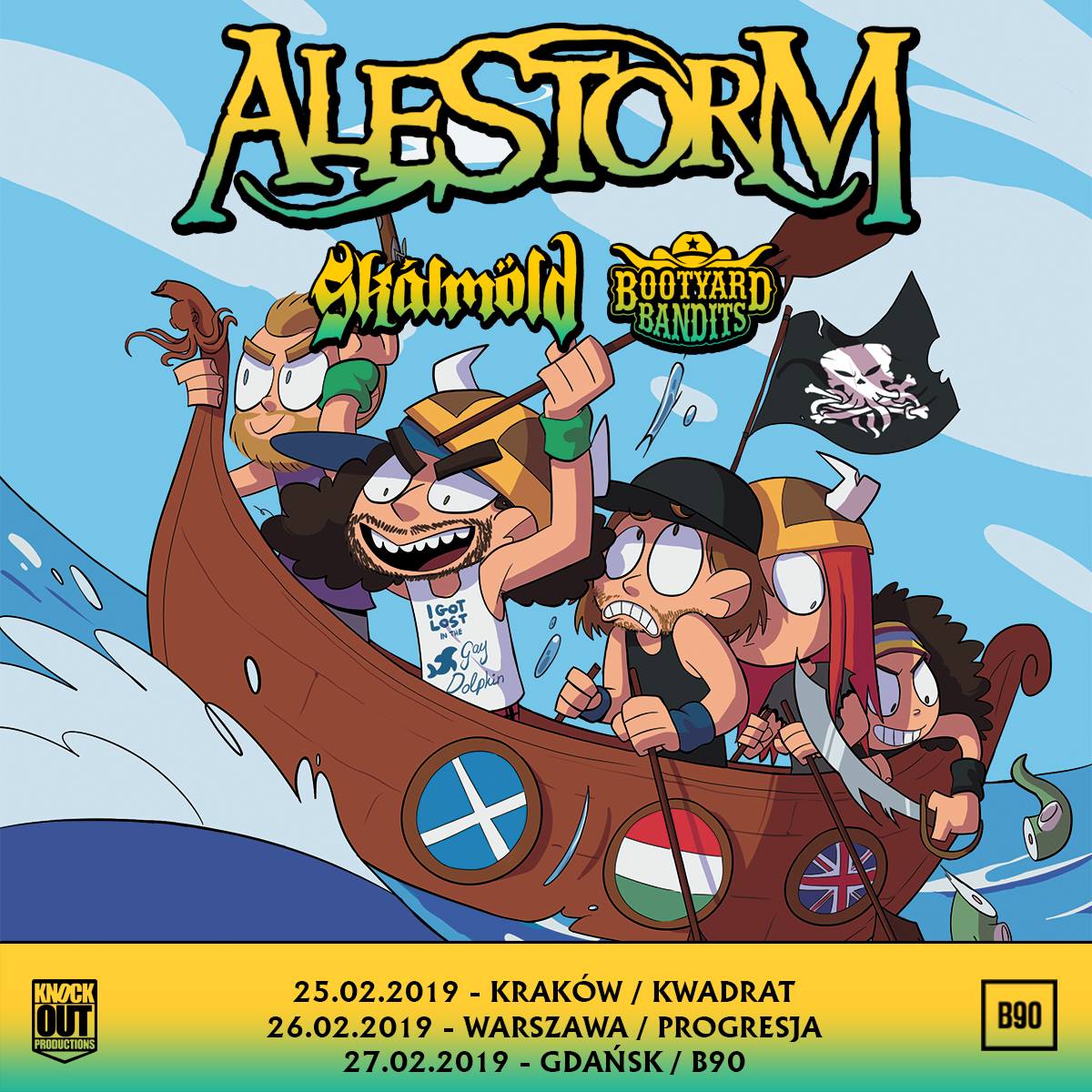 Fani pirackiego metalu będą szczęśliwi! Pod koniec lutego zespół Alestorm wystąpi w Polsce na trzech koncertach. Zespół ze Szkocji przyjedzie do naszego kraju promować swój najnowszy album No Grave But The Sea, który ukazał się w maju 2017 roku. W roli gościa specjalnego na całej trasie wystąpi grupa Skálmöld.
