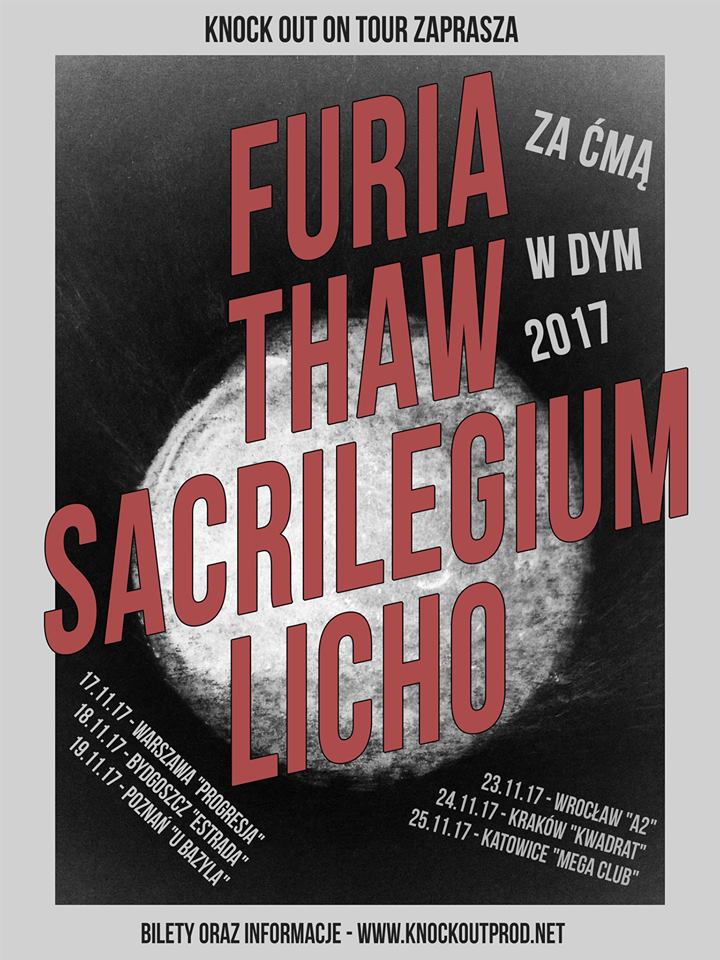 Knock Out Productions zaprasza na trasę koncertową Za Ćmą w Dym 2017. W trakcie sześciu koncertów zaprezentują się Furia, Thaw, Sacrilegium oraz Licho. Koncerty odbędą się: