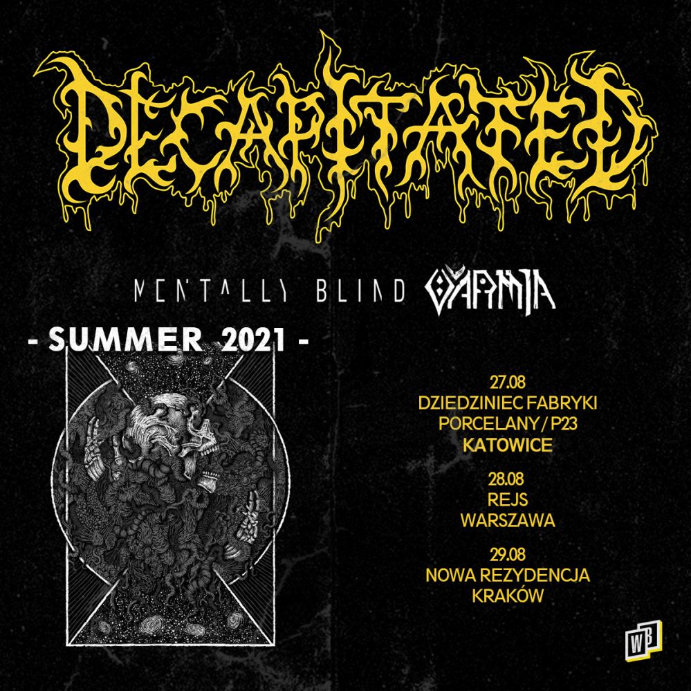 Razem z WiniaryBookings zapraszamy na koncerty death metalowego zespołu Decapitated, który wystąpi w Polsce na trzech koncertach, a wspierać ich w roli supportu będą: Varmia (black metal) oraz Mentally Blind (metalcore).