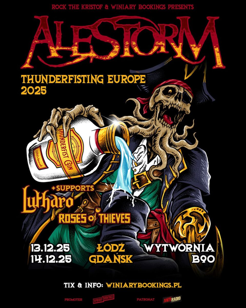 W ciągu blisko dwudziestu lat Alestorm stali się gigantem w świecie pirackiego metalu. Ich kariera obfituje w świetnie przyjęte płyty, trasy z takimi zespołami jak Turisas, Sabaton, Dragonforce i Eluveitie oraz występy na największych metalowych festiwalach, w tym m.in. na Wacken, Bloodstock, Graspop, czy Sweden Rock. W czerwcu Szkoci wydali ósmy w swoim dorobku album “The Thunderfist Chronicles”. Znajdziemy na nim głównie to, do czego kwintet nas już przyzwyczaił – wysoce energiczne i oparte na świetnych riffach kompozycje, z niespodziankami w postaci coveru “Goblins Ahoy!” z repertuaru Nekrogoblikon oraz zamykającego całość, siedemnastominutowego kolosa “Mega-Supreme Treasure of the Eternal Thunderfist”.