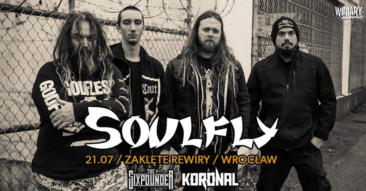 Soulfly wystąpi na jedynym klubowym headline’owym koncercie w Polsce! Już 21 lipca będziemy mieli okazje zobaczyć kultowy dla fanów gatunku zespół dowodzony przez niezmordowanego Maxa Cavalera. Jako supporty zagrają The Sixpounder oraz Koronal.