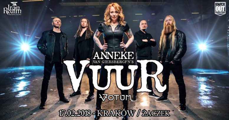 Iron Realm Productions oraz Knock Out Productions zapraszają na koncert zespołu Vuur, który został założony przez Anneke van Giersbergen. Zespół promować będzie album In This Moment We Are Free – Cities, który ukazał się 20 października 2017 roku. Na setliście znajdzie się materiał z naszej płyty, oraz kilka moich ulubionych kawałków z katalogu mojej muzycznej przeszłości. Jako support wystąpi polski zespół Votum.