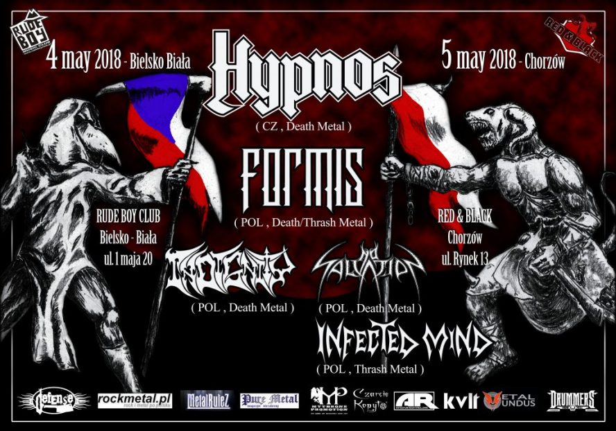 Za niecały miesiąc w dwóch miastach w Polsce zagra czeski zespół Hypnos, czyli filar czeskiego death metalu. Bezpośrednim supportem będzie grupa Formis, która w ubiegłym roku wydała bardzo dobry album Chaozium. Dodatkowo publikę będą rozgrzewać: w Bielsku-Białej – Indignity oraz w Chorzowie – No Salvation i Infected Mind.