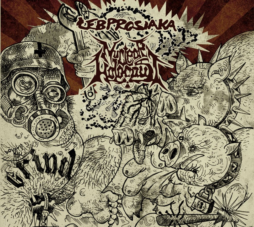 A to ci płyta mi się trafiła. Z jednej strony quasi-legenda polskiego patogrania, twórcy takich radiowych przebojów, jak Ssij Mi Lachę czy Janosik, załoga, która parasole w dupach otwiera już od dwa tysiące czwartego, powracający z emerytury Łeb Prosiaka. Z drugiej, Nuclear Holocaust, który, pomimo krótkiego stażu, zawojował już rodzimą scenę grindową i grał chyba w każdym nadającym się do tego miejscu. Pierzchaj, kto w Boga wierzy.