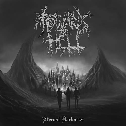 Eternal Darkness jest już na dzień dobry trochę infantylna – okładka przestawiająca trzy sylwetki na tle jakiegoś jebitnego miasta z krzyżem, wciśniętego między dwa spiczaste wzgórza, ksywy muzyków (Ereb, Thrasher, Askalon)… Kiedy do kompletu odpalam nagrania, mam podobne wrażenia jak wtedy, kiedy oglądam swoje zdjęcia sprzed piętnastu lat: lekkie zażenowanie, że tak wyglądałem, nosiłem takie, a nie inne ubrania, robiłem takie, a nie inne rzeczy. I choć mam świadomość, że w tamtym okresie było to zupełnie normalne i niczym się spośród rówieśników nie wyróżniałem, lekkie uczucie śmieszności pozostaje. Podobnie jest w przypadku Eternal Darkness. Wszystko jest tu tak skupione na kulcie true black metalu, całej norweskiej sceny przełomu lat 80-tych i 90-tych, że gdyby mi ktoś powiedział, że to jakieś demo z tamtych czasów, to pewnie bym uwierzył. Ale to akurat nie jest dobra rzecz. Naśladownictwo może być w porządku, jeśli nie jest ślepe. Towards The Hell póki co skupiają się na odtworzeniu tego, co ich w klasyce norweskiego blacku najbardziej jara, czyli klimatu. Brakuje im jednak jeszcze umiejętności świadomości muzycznej (trudno jej wymagać od młodych muzyków tworzących początkujący zespół), ale także umiejętności, zarówno praktycznych, jak i teoretycznych. Zespół nie do końca jeszcze wie co działa, a co nie, porusza się trochę po omacku, przedkładając atmosferę nad samą muzykę. Tymczasem to muzyka tworzy atmosferę. Same utwory brzmią trochę jak pierwsze szkice – nie dzieje się w nich praktycznie nic, są jednostajne, utrzymane w boleśnie średnich tempach, kompletnie nie angażujące i oparte na kilku podstawowych patentach (a już nużącą do granic melodeklamację w postaci Black Mass można sobie w ogóle darować, jeśli twórcom obca jest jeszcze idea interpretacji tekstu). Towards The Hell skopiowali zatem od swoich wymalowanych białymi i czarnymi farbkami idoli to, co byli w stanie zagrać, i z tego polepili kilka numerów, które potem nagrali w domowych warunkach (brzmi źle, ale znośnie, na dodatek kwestię brzmieniową znów można zrzucić na karb hołdu dla starego blacku, który też brzmiał fatalnie) i wypuścili w formie epki. W sumie zaskakujące, że najlepiej w tym wszystkim wypadają wokale.