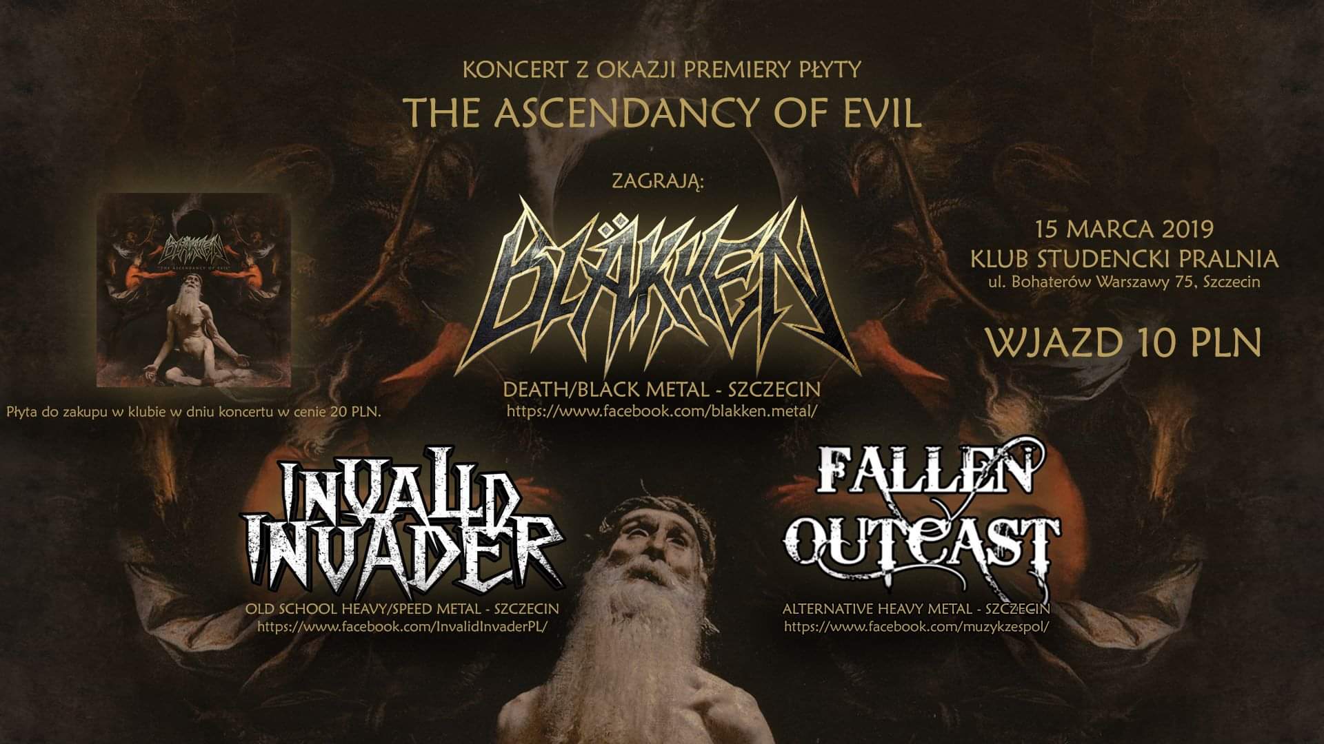 15 marca w szczecińskim klubie Pralnia wystąpi zespół Bläkken. Obok grupy zagrają Invalid Invader oraz Fallen Outcast. Podczas koncertu formacja Bläkken będzie promować nowy album The Ascendancy Of Evil, który będzie można zakupić w cenie 20 zł.