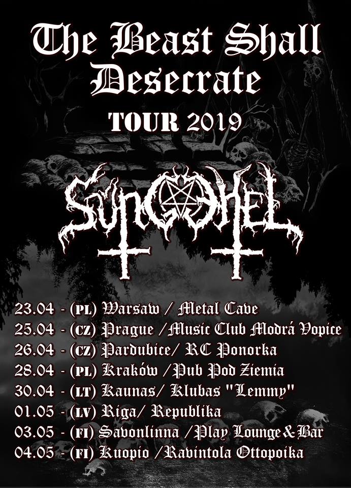 Blackmetalowcy z estońskiego Süngehel już w tym miesiącu zagrają dwa koncerty w naszym kraju. Trasa The Beast Shall Desecrate Tour 2019 obejmie Polskę, Czechy, Litwę, Łotwę oraz Finlandię.