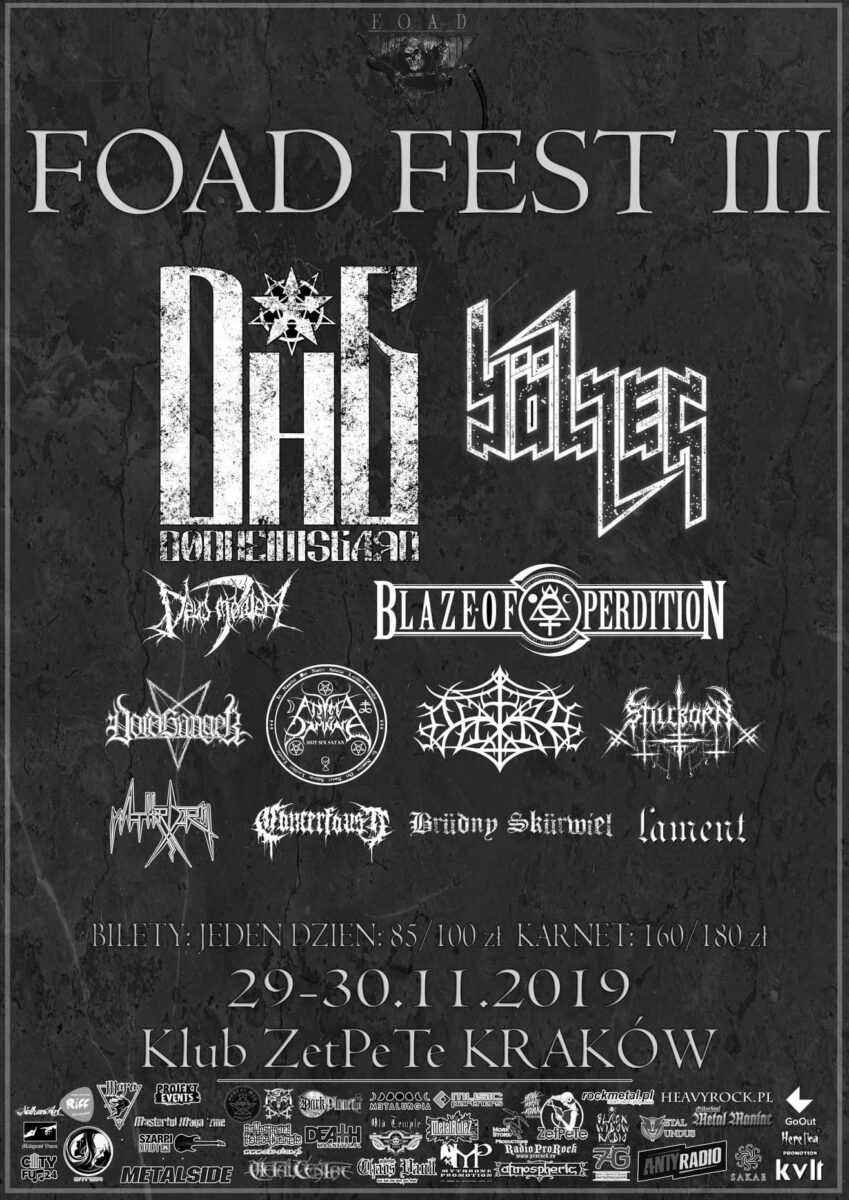 Tagi: Anima Damnata, Blaze of Perdition, Bölzer, Brüdny Skürwiel, Cancerfaust, Deus Mortem, Dødheimsgard, Foad Fest 3, kraków, Lament, Matterhorn, Outre, Stillborn, Voidhanger, zespoły, Zet Pe Te.