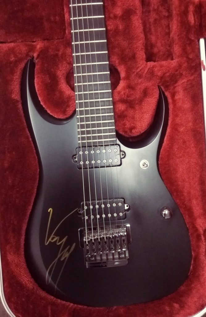 Sam muzyk przekazał i podpisał Ibaneza na licytację w grupie Licytuje-Pomagam z okazji koncertu Prezent Mikołajowy dla Kacperka, który odbył się w Samorządowym Centrum Kultury i Promocji Gminy Zabierzów.