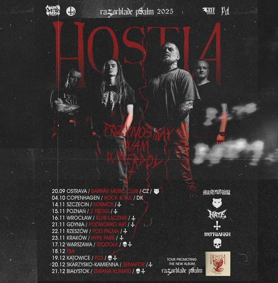 Od września do grudnia w trasę koncertową po Czechach, Danii oraz Polsce wybierze się formacja Hostia. Podczas Razorblade Psalm 2025 grupa zagra: