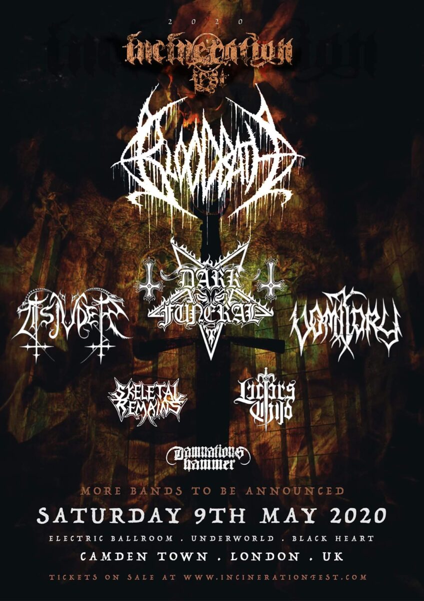 Tagi: 2020, Bloodbath, Camden Town, Damnations Hammer, Dark Funeral, festiwal, Incineration Fest 2020, Lucifer's Child, Skeletal Remains, Tsjuder, Vormitory, zespoły.