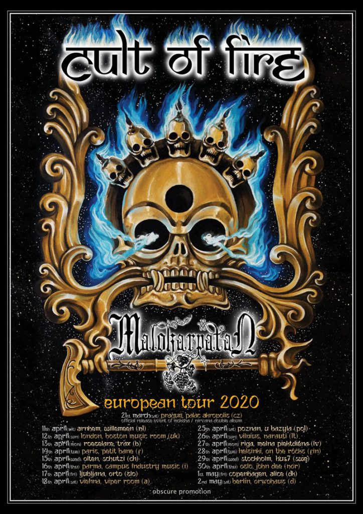 Po około 30 pojedynczych, festiwalowych koncertach, Cult of Fire wyruszy w pierwszą trasę koncertową w swojej historii. Towarzyszyć im będzie słowacki Malokarpatan. Left Hand Sounds we współpracy z Obscure Promotion z dumą prezentuje jedyny w Polsce koncert czeskiej, black metalowej formacji Cult of Fire!