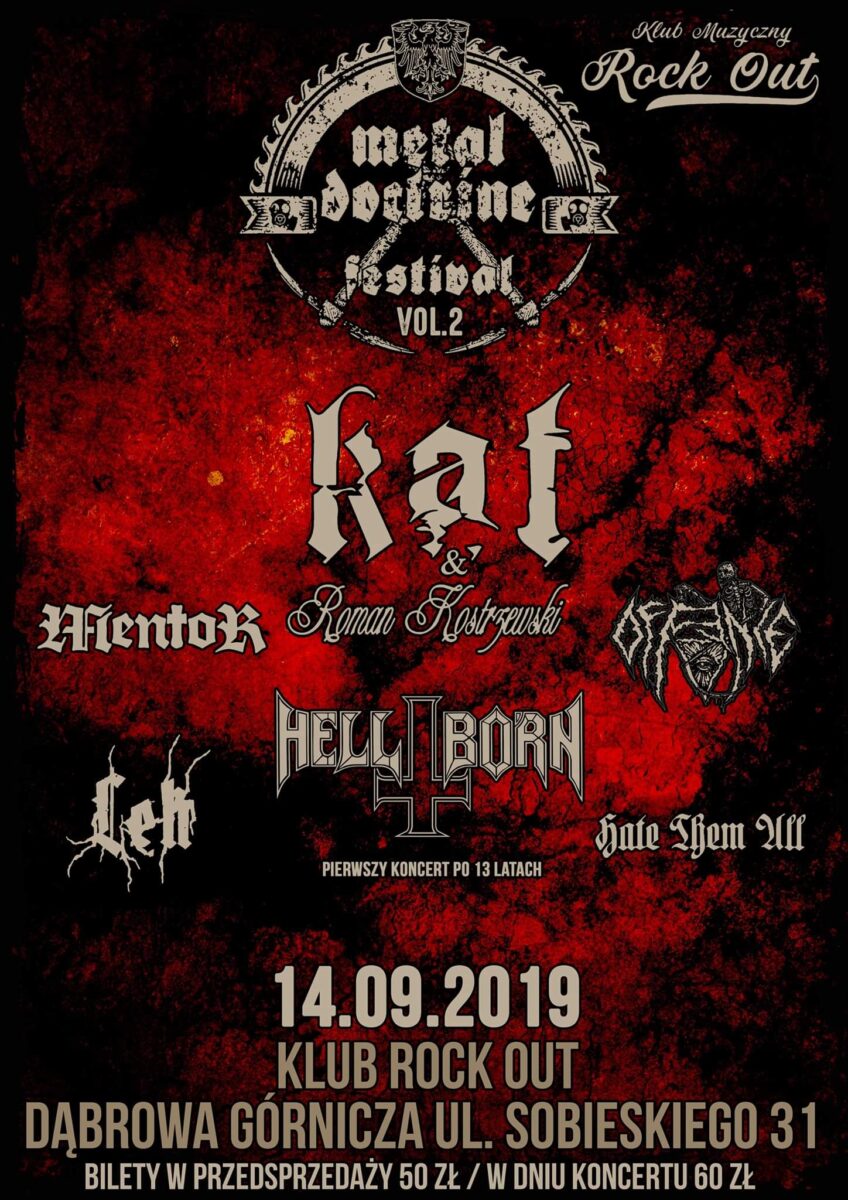 Tagi: bilety, Dąbrowa Górnicza, Hate Them All, Hell-Born, Kat & Roman Kostrzewski, koncert, Lęk, Mentor, Metal Doctrine Festival vol.2, Offence, Rock Out, zespoły.