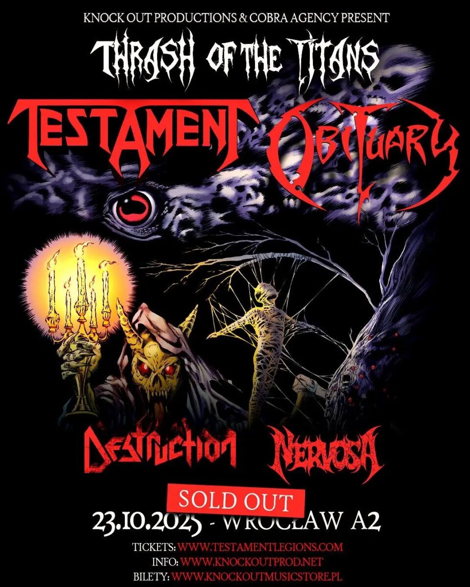 Testament, Obituary, Destruction i Nervosa na jedynym koncercie w Polsce! Metalowe święto, czyli polska odnoga trasy Thrash of the Titans, odbędzie się 23 października we wrocławskim A2.
