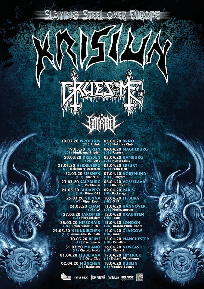 W marcu i kwietniu 2020 roku przez Europę przetoczy się trasa koncertowa pod szyldem Slaying Steel Over Europe, na której wystąpią brazylijscy mistrzowie death metalu Krisiun w towarzystwie Gruesome oraz Vitriol.