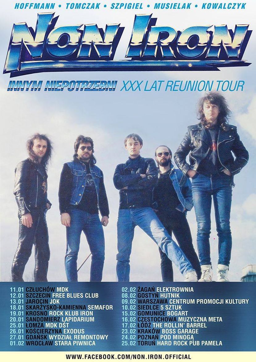 Ikona polskiego hard rocka – formacja Non Iron rozpoczęła w styczniu bieżącego roku, obejmującą blisko 20 przystanków pożegnalną trasę koncertową pod szyldem Innym Niepotrzebni – XXX Lat Reunion Tour. Na tą okoliczność grupa odrodziła się po 30 latach w pełnym klasycznym składzie: