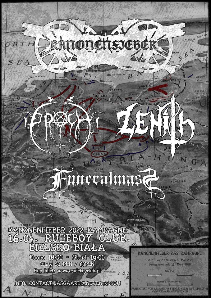 Już niebawem za dwa tygodnie w Bielko-Białej, dokładnie w Rudeboy Club zagra black metalowy projekt Kanonenfieber. Przy boku niemieckiego projektu zagrają takie zespoły jak Proch, Zenith i Funeral Mass. Jak informuje Kanonenfieber, będzie to jego pierwszy koncert zagrany w Polsce, a drugi ogółem. Więcej informacji poniżej.