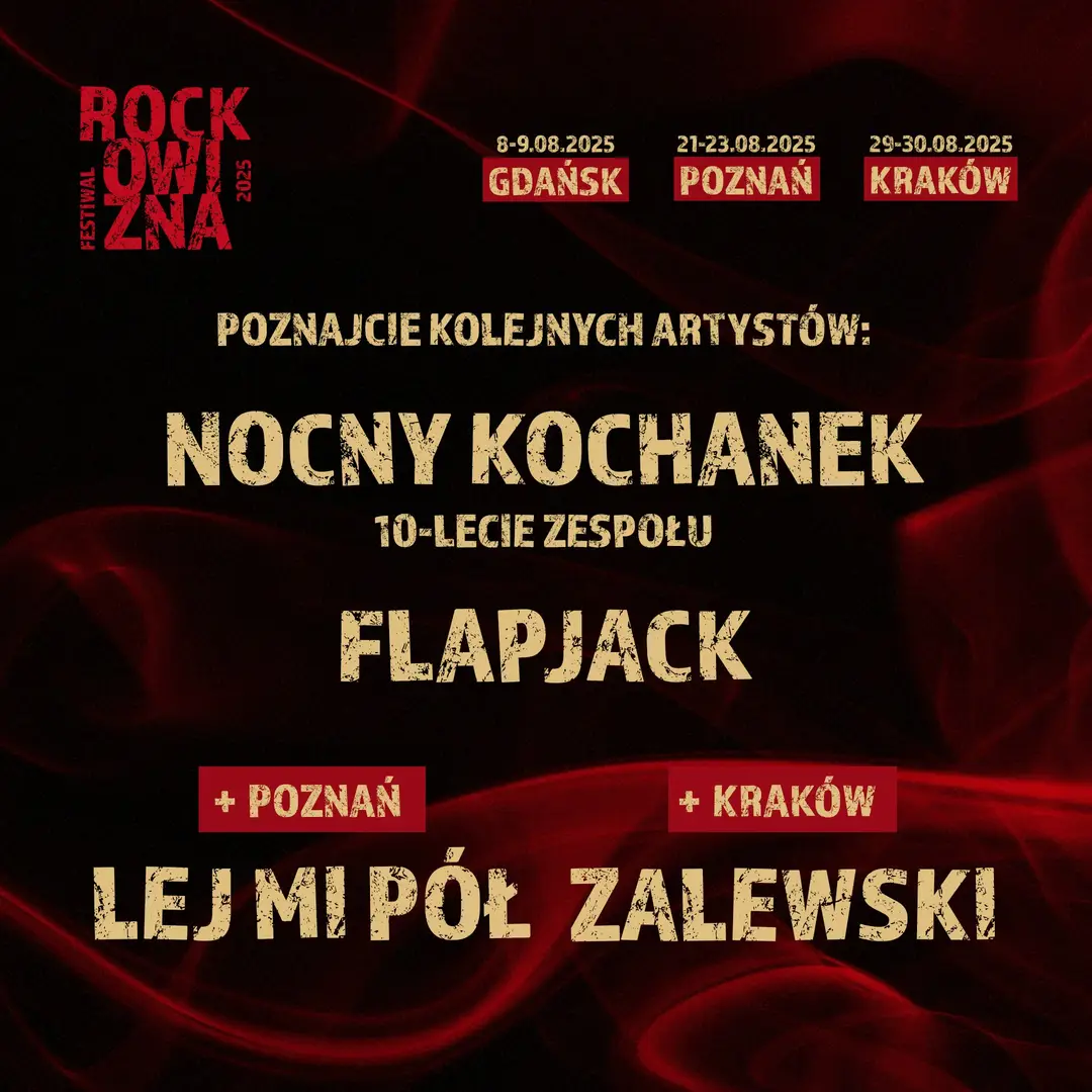 Organizatorzy Rockowizna Festiwal 2025 ogłosiła kolejne formacje, które zagrają na imprezie. Do składu dołączają: