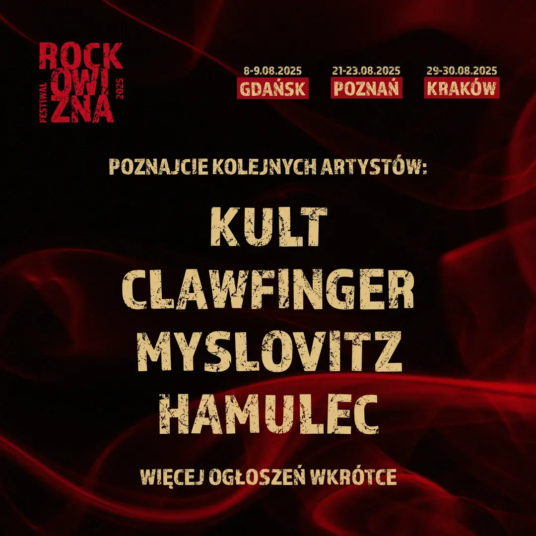 Organizatorzy Rockowizna Festiwal 2025 ogłosiła kolejne zespoły, który zagrają na imprezie. Do składu dołączają: