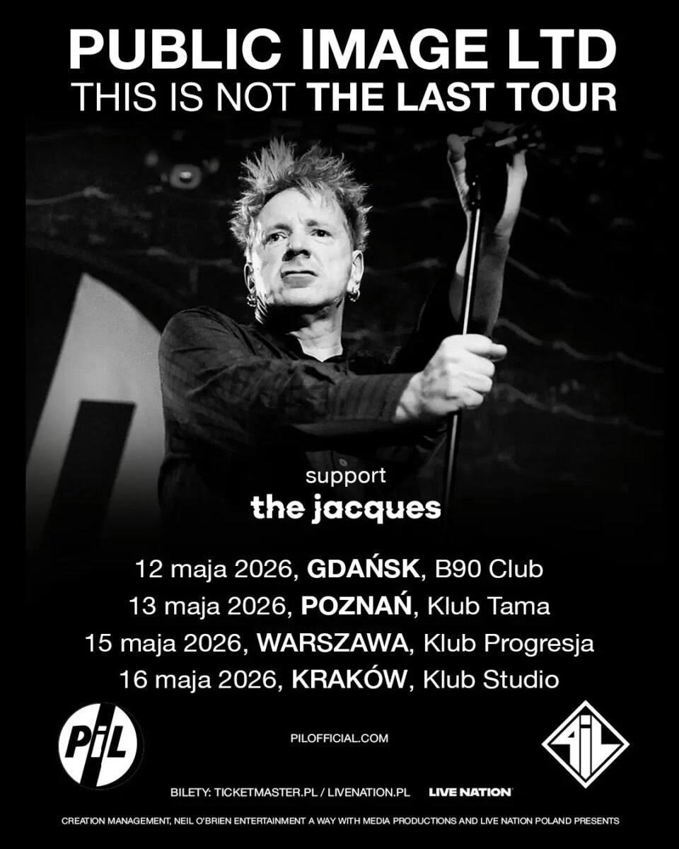 Tagi: 2026, B90, bilety, gdańsk, koncerty, kraków, Live Nation Polska, maj, poznań, progresja, Public Image LTD, studio, support, Tama, The Jacques, warszawa.