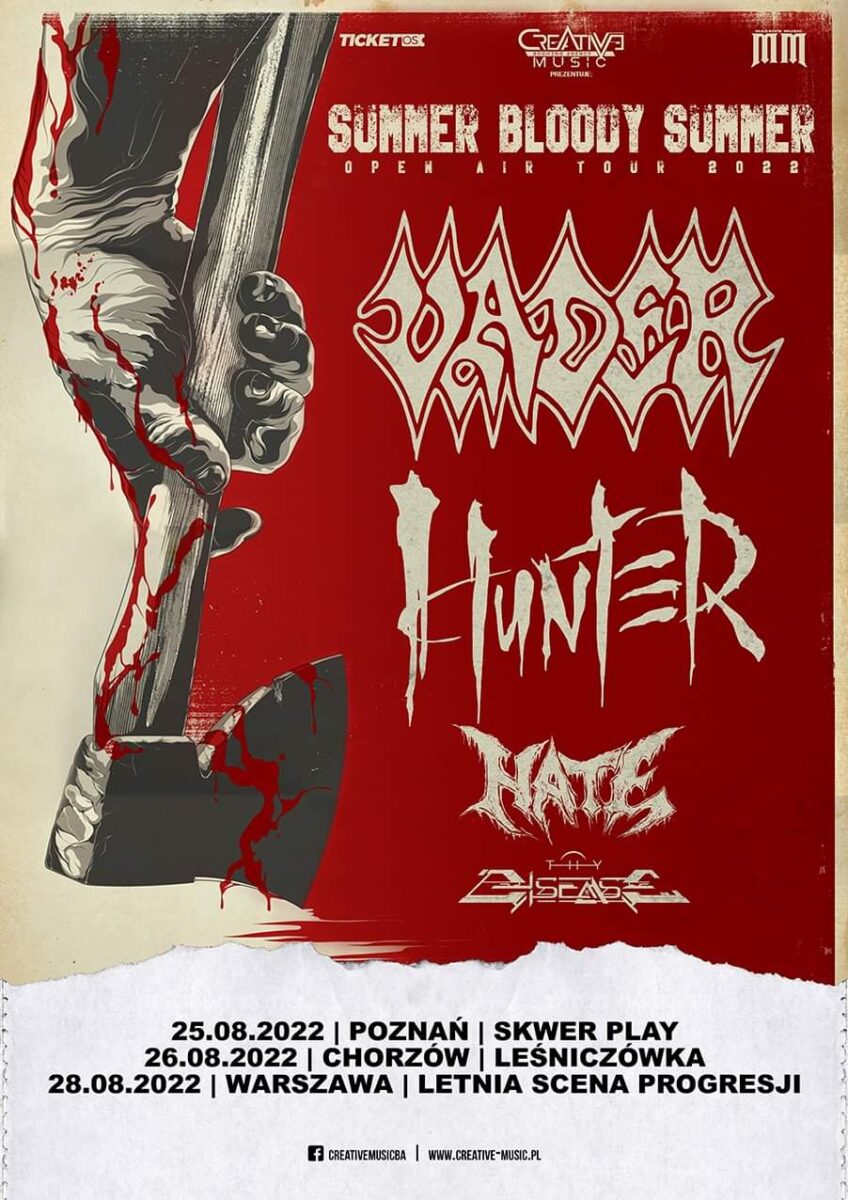 Tagi: chorzów, Creative Music, Hate, hunter, koncerty, Leśniczówka Rock'n'Roll Cafe, Letnia Scena Progresji, Massive Music, mini trasa koncertowa, poznań, Skwer Play, Summer Blood Summer 2022, Thy Disease, Vader, warszawa.