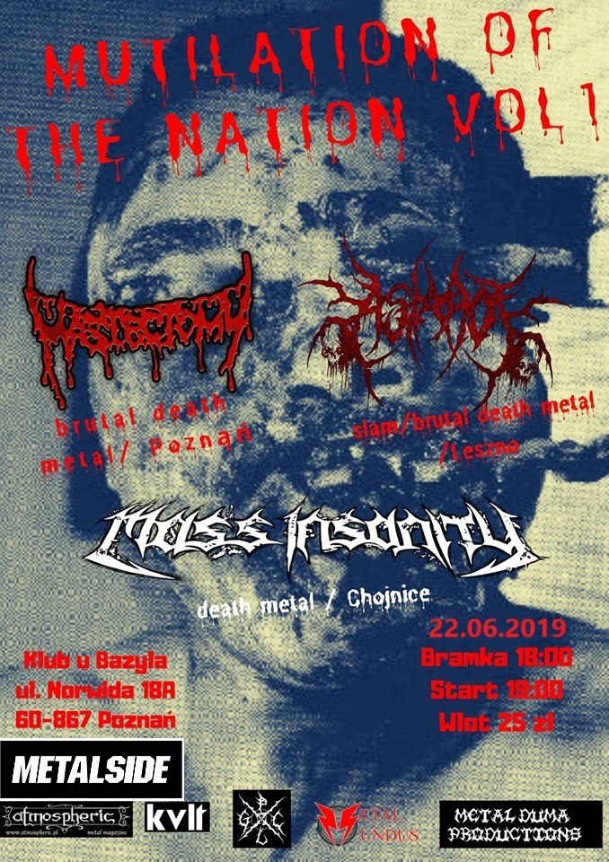 W najbliższą sobotę, tj. 22 czerwca 2019 roku odbędzie się pierwsza edycja klubowego festu pod szyldem Mutilation Of The Nation Fest. Na scenie wystąpią trzy mordercze ekipy: Mass Insanity (death metal), Astarot (slam/brutal death metal) oraz Mastectomy (brutal death metal).