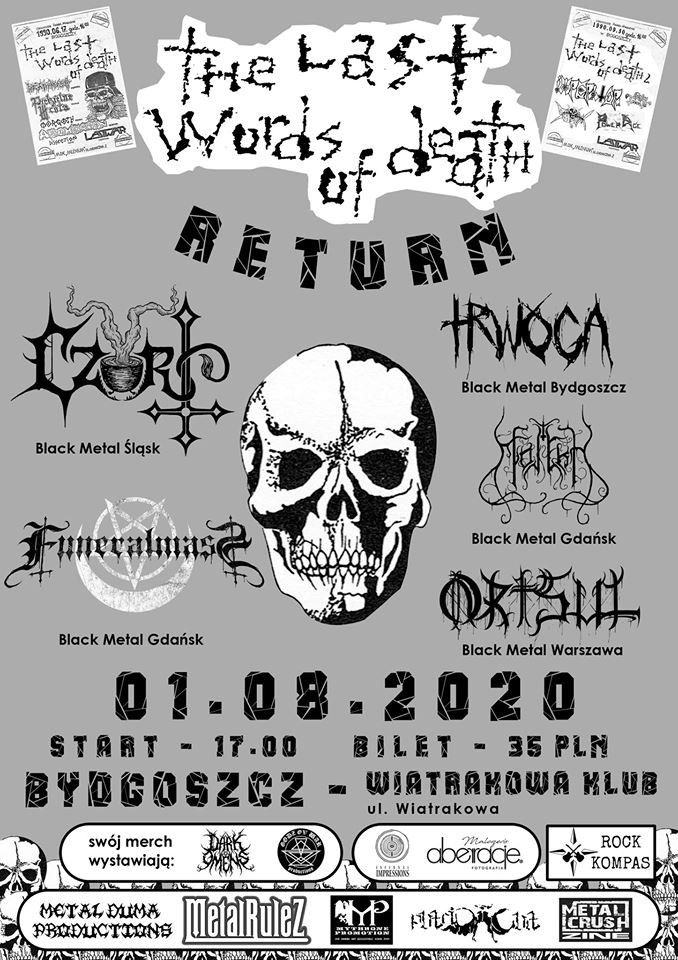Tagi: 2020, black metal, bydgoszcz, Czort, event, Funeral Mass, koncert, molekh, Ortsul, The Last Words of Death, Trwoga, Wiatrakowa Klub.