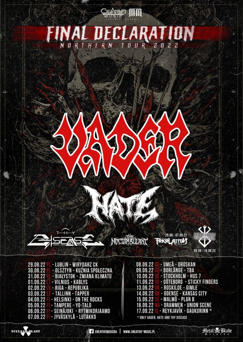Jesienią tego roku legenda polskiego metalu, death metalowy VADER wraz z HATE oraz THY DISEASE połączą siły po raz kolejny i wyruszą w trasę po Skandynawii, krajach Bałtyckich oraz Islandii!