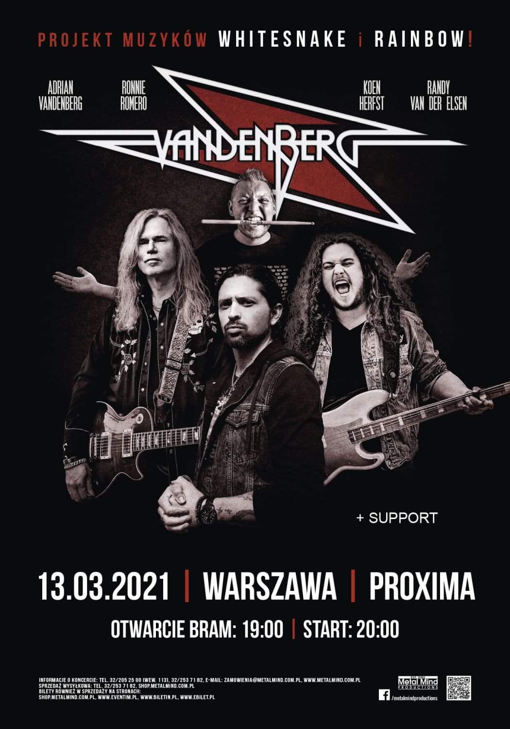Metal Mind Productions zaprasza wszystkich na jedyny koncert zespołu Vandenberg. Formacja składająca się z muzyków Whitesnake oraz Rainbow wystąpi: